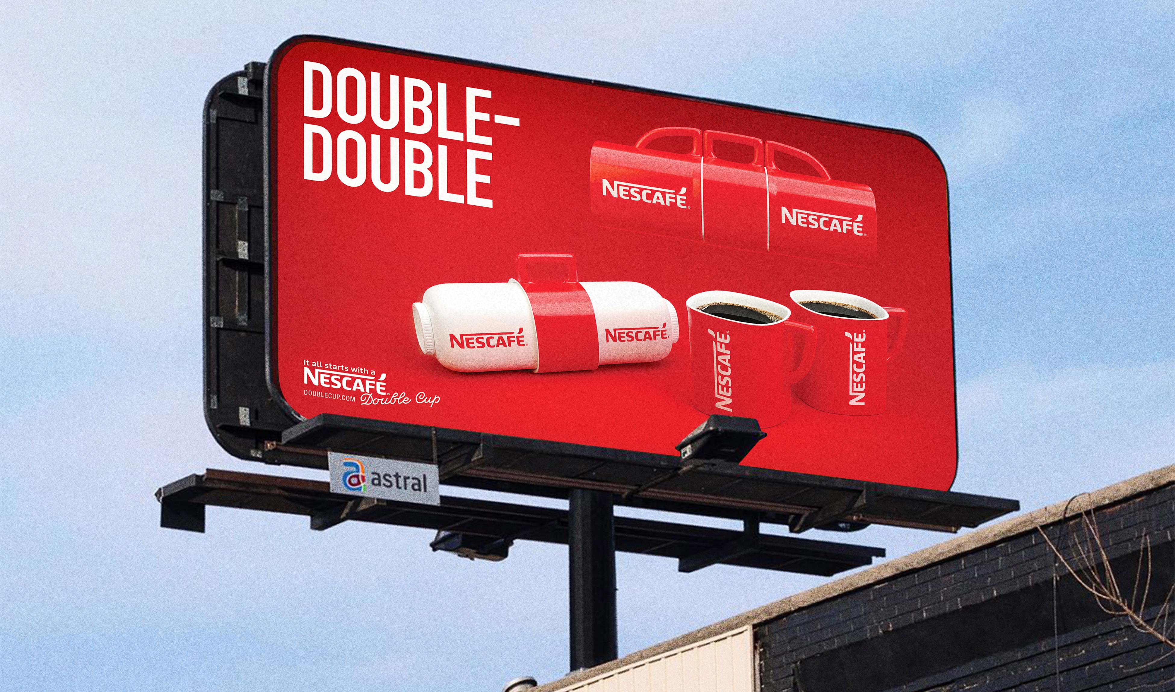 Nescafe wanted a big idea that would create an experience for their consumers. They wanted to reduce the amount of times their consumers spent stopping off at Tim Hortons on the way to work, as a result of this campaign. We proposed allowing Nescafe's consumers to create their own experiences and share them online. Introducing the Nescafe Double Cup.